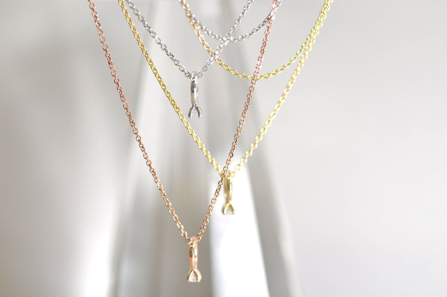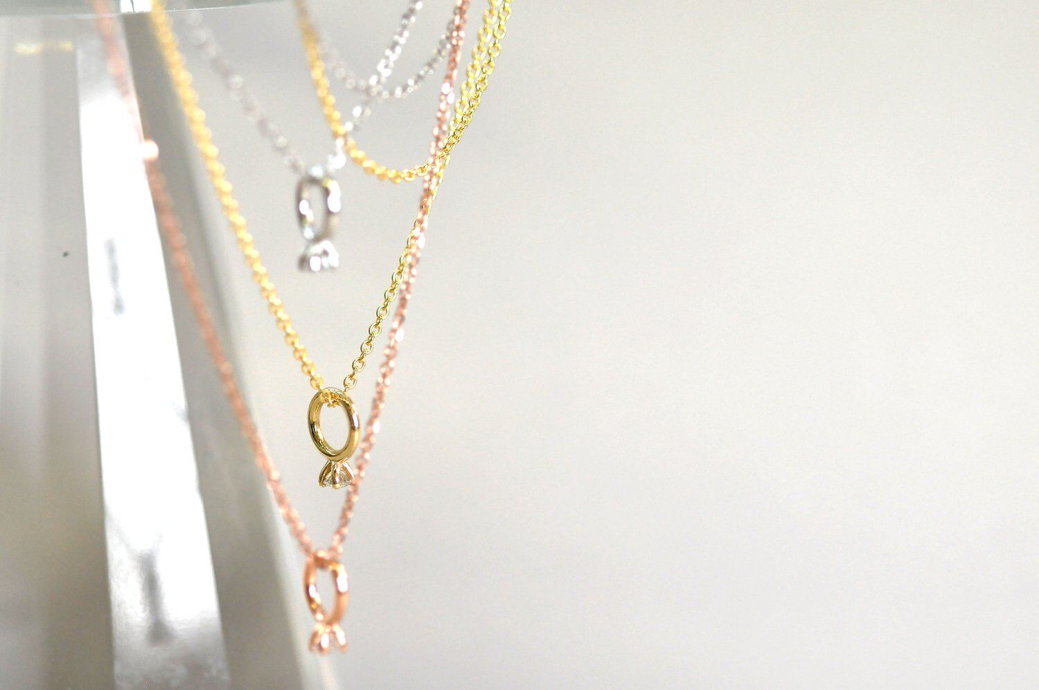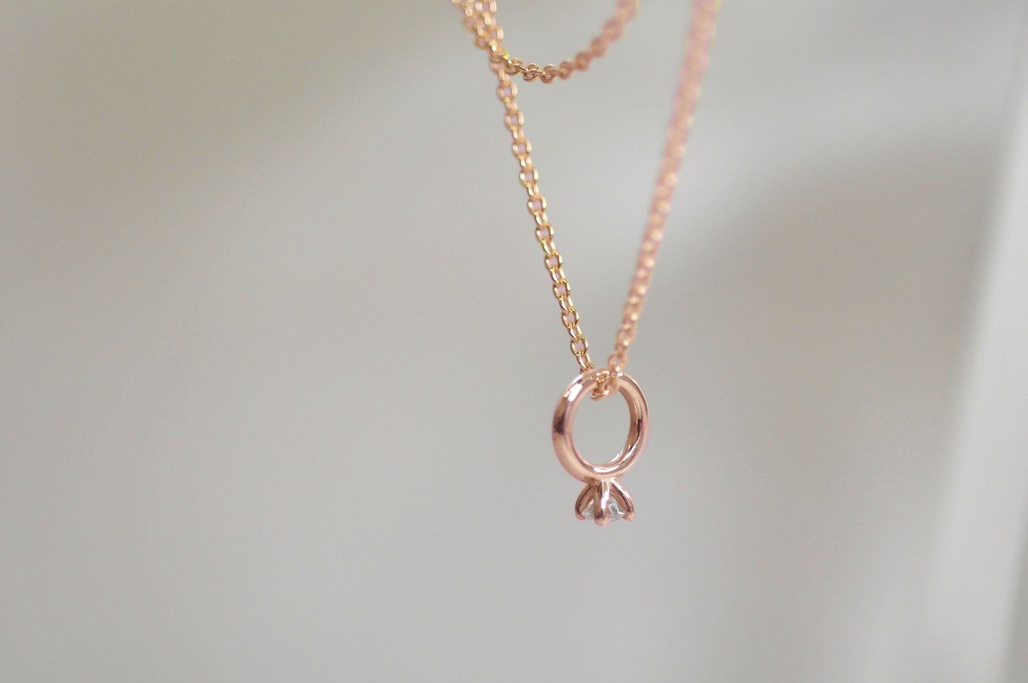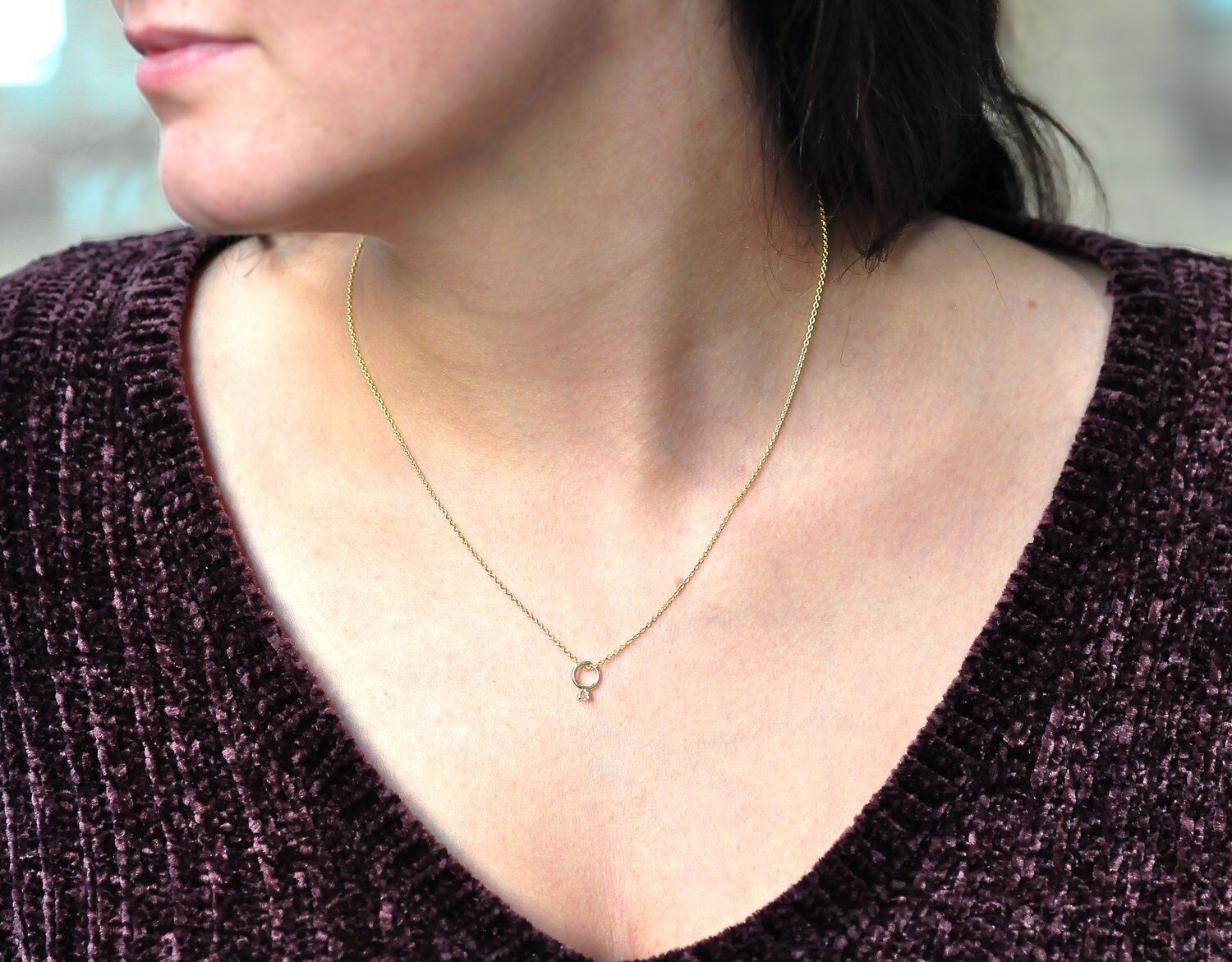 The Tiny Ring™ includes a solid gold and lab diamond pendant on an 18” chain, in your choice of 10 karat white, yellow or rose gold.